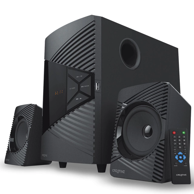 Potência total do sistema: 30 W, 7,5 W RMS por canal (2 canais), Subwoofer: 15 W RMS