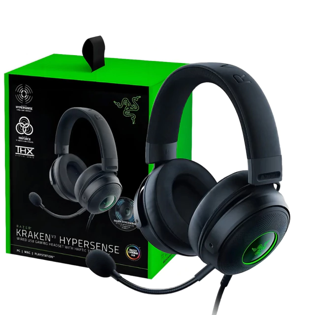 Headset Gamer Razer Kraken V3 Hypersense Preto Rgb Chroma Usb Dolby Digital Surround 7.1 - RZ04-03770100-R3U1
