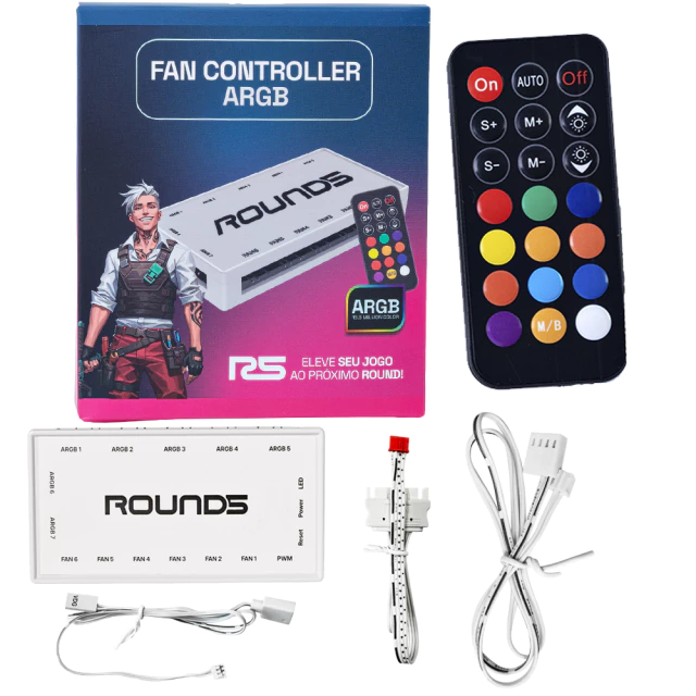 Hub De Fan E Hub Controller Round5 Branco C/6 Portas Pwm E C/7 Portas Argb C/ Controle - R5-CONTROLLER-ARGB-W-2208