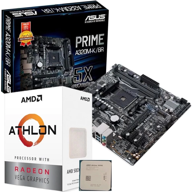 Placa Mãe Asus Prime A320m-K/Br, Processador Amd Athlon-Series 3000g