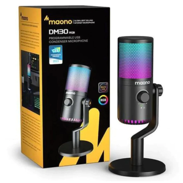 Microfone Condensador Gamer Maono Dm30 Rgb Preto Streamer USB
